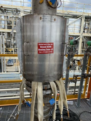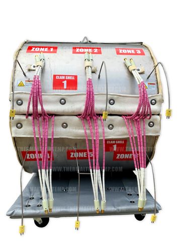 Using the technology of our Flexible Ceramic Pads that can reach temperatures of up to 1800°F, our Electrical Resistance Clamps and Clam Shells can all be custom-made to the exact dimensions needed for your project. Our Electrical Resistance Clam Shells have a fixed diameter that makes for an easy installation and repeatable heat-treating. Our Electrical Resistance Clamps offer the convenience of only needing one accessory to heat-treat multiple vessels of different diameters. Either one of these can be paired with one of our rolling and lifting carts that work to position these accessories in hard-to-reach areas.
