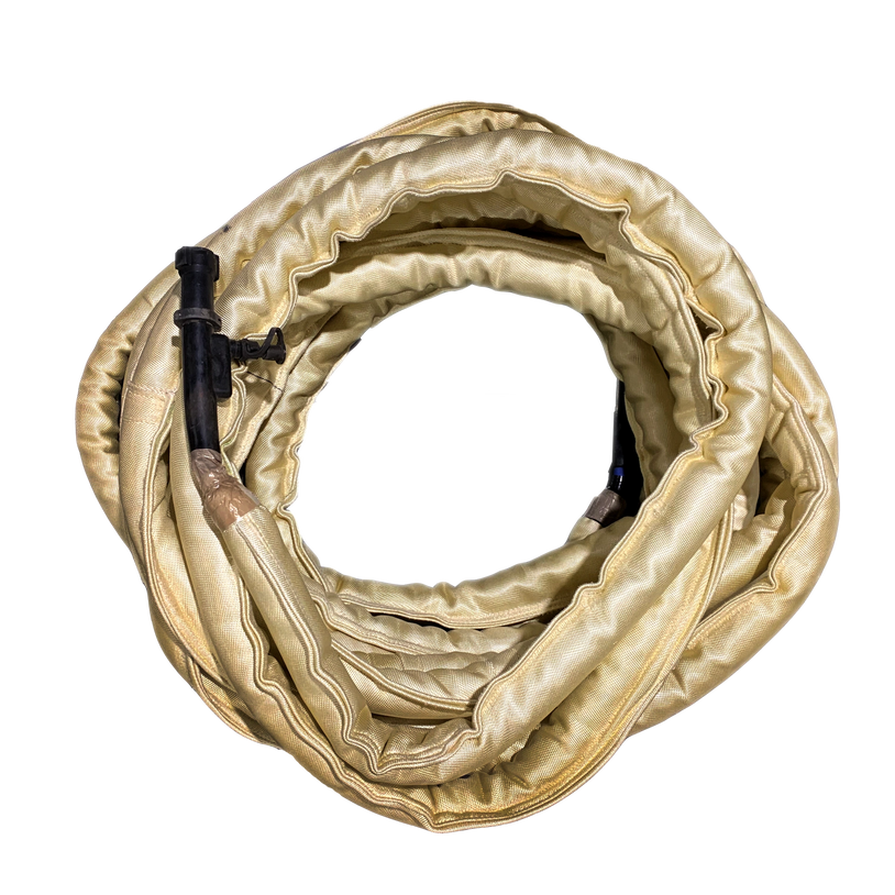 Our insulated induction coil sleeves are completely customizable to your heat treating application. First, choose from either our 36-ounce silica fabric or 22-ounce kevlar fabric for the outer protection of the sleeve. Then, choose your insulation thickness from our choices of E-glass Needled Mat or Thermasil Needled Mat. Finally, we are able to sew on this insulated sleeve to either a coil that your company already has or a brand new liquid or air-cooled induction coil in any length that best suits your needs. With protective layers of both fabric and insulation, our insulated induction coil sleeves provide a high level of flexibility, durability, and thermal containment.